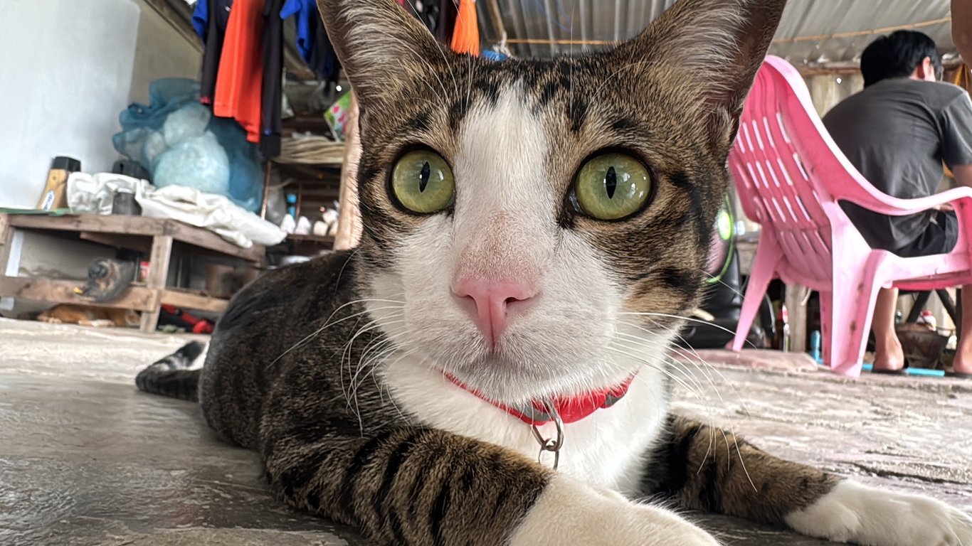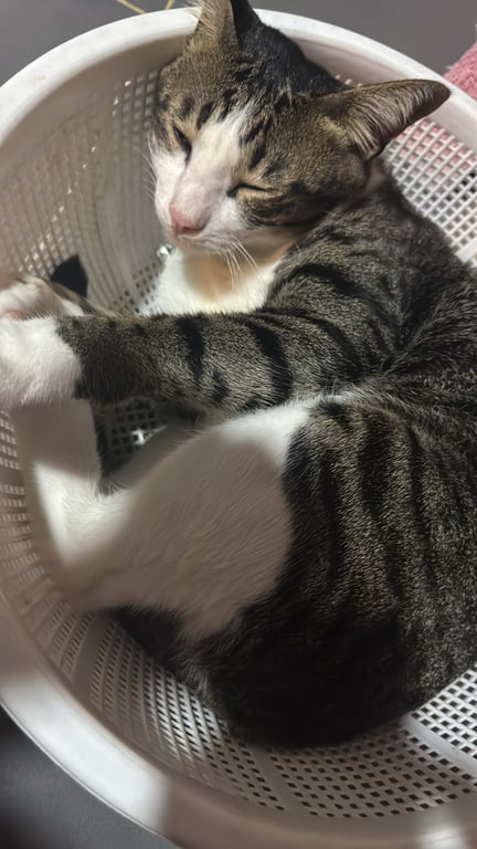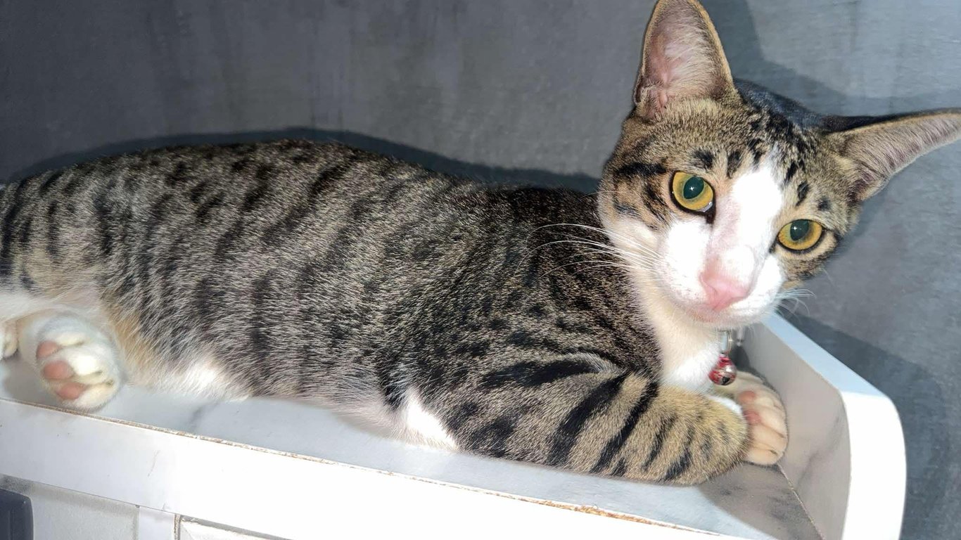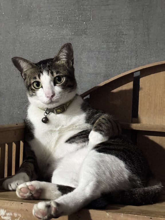 รอยตำหนิ: หน้าขาวท้องขาวหลังดำๆเงาๆ ลายสลิดชอบวิ่งเล่นหน้าบ้านจับตักแตน ขี้กลัวกลัวเสียงรถ แต่ไม่ค่อยกลัวคน น้องไม่เคยหายออกจากบ้าน แต่วิ่งเล่นแค่หน้าบ้านปีนต้นไม้เล่นหญ้า