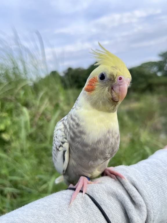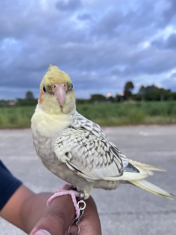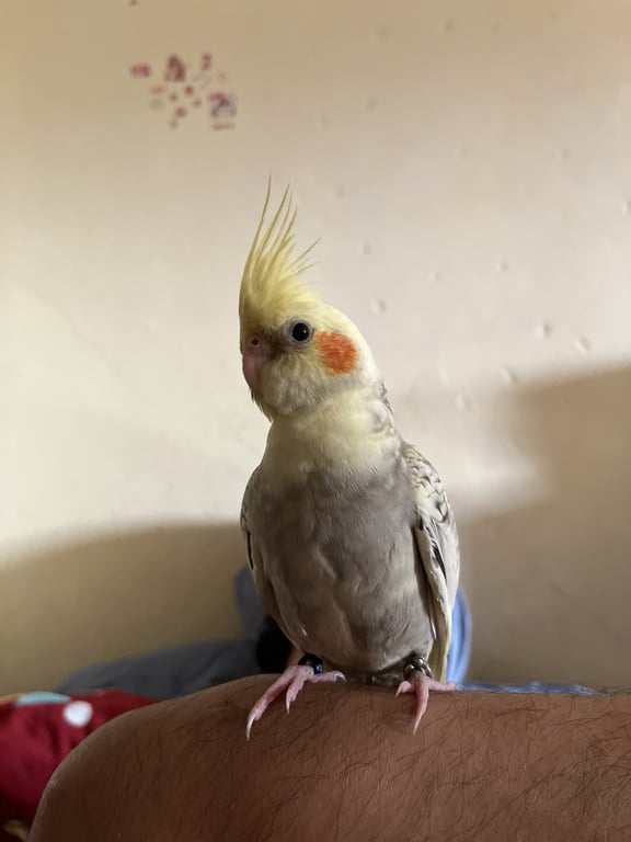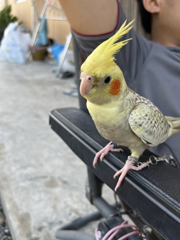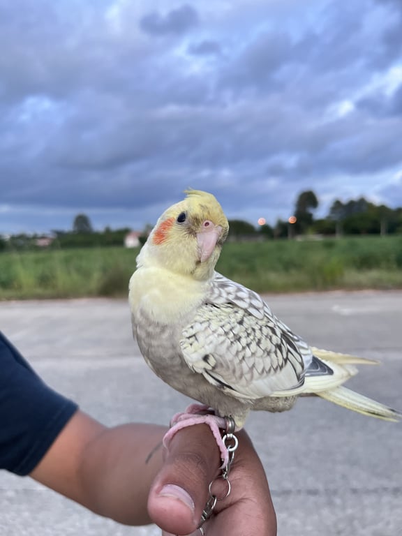 รอยตำหนิ: มีจุดรอยด่างสีชมพูบนหัว มีห่วงขาสีน้ำเงินสลักชื่อเบอร์โทร4เดือน