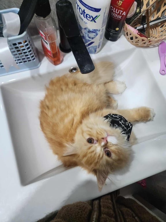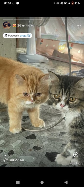 รอยตำหนิ: ตัวสีส้ม ตากลมตาเปียกง่าย น้องขี้กลัว ใส่ปอกคอกระดิ่ง2ลูกตัวสีส้มอ่อนผสมขาวนิดๆ ตาน้ำตาล ปอกคอเป็นลูกกระดิ่งขาวดำ
