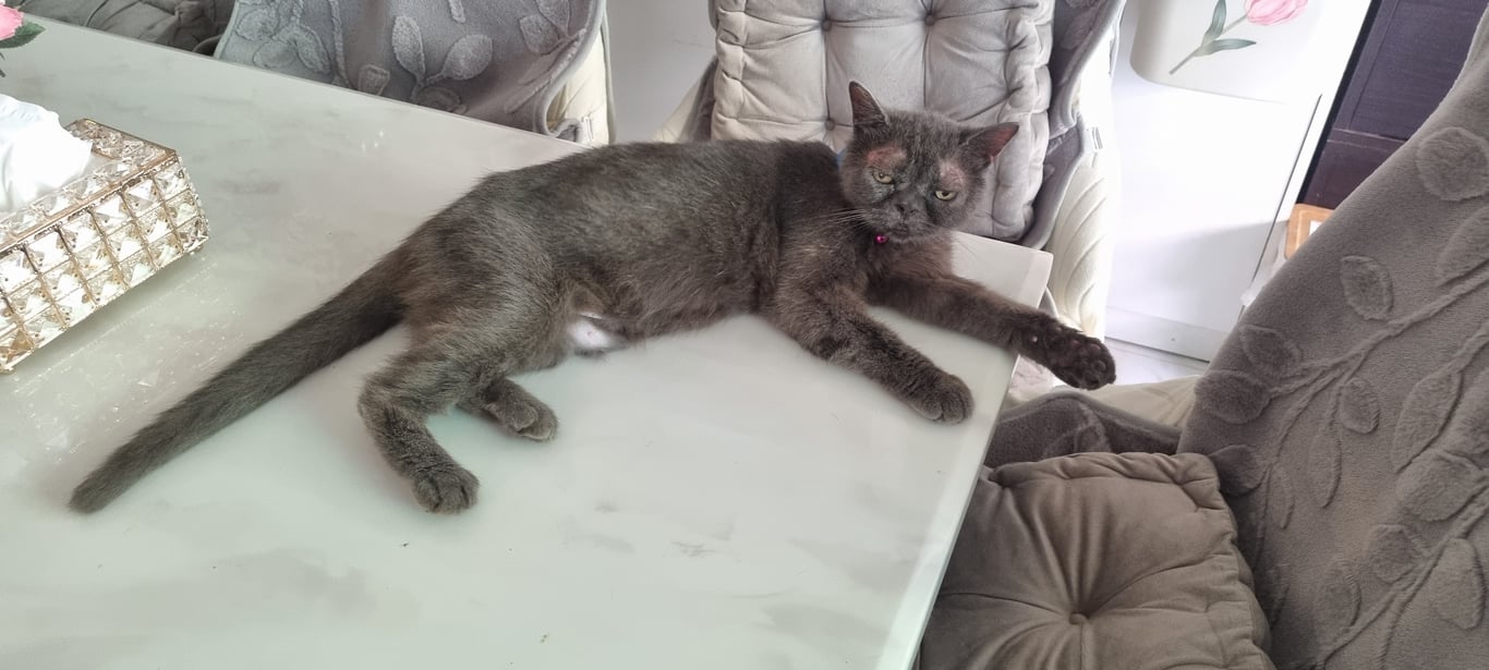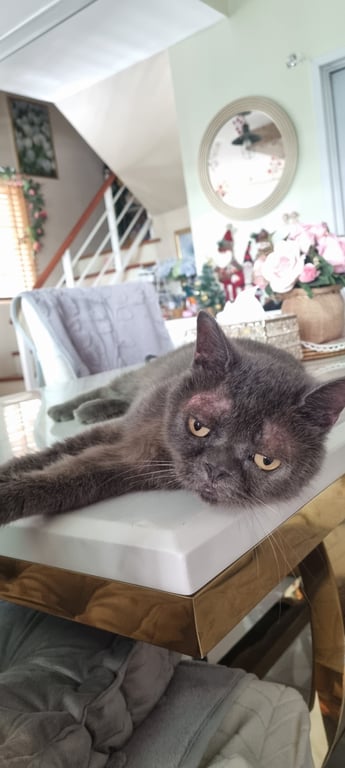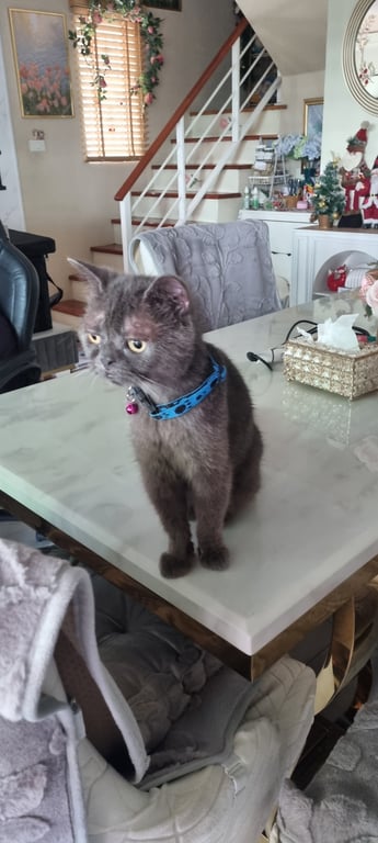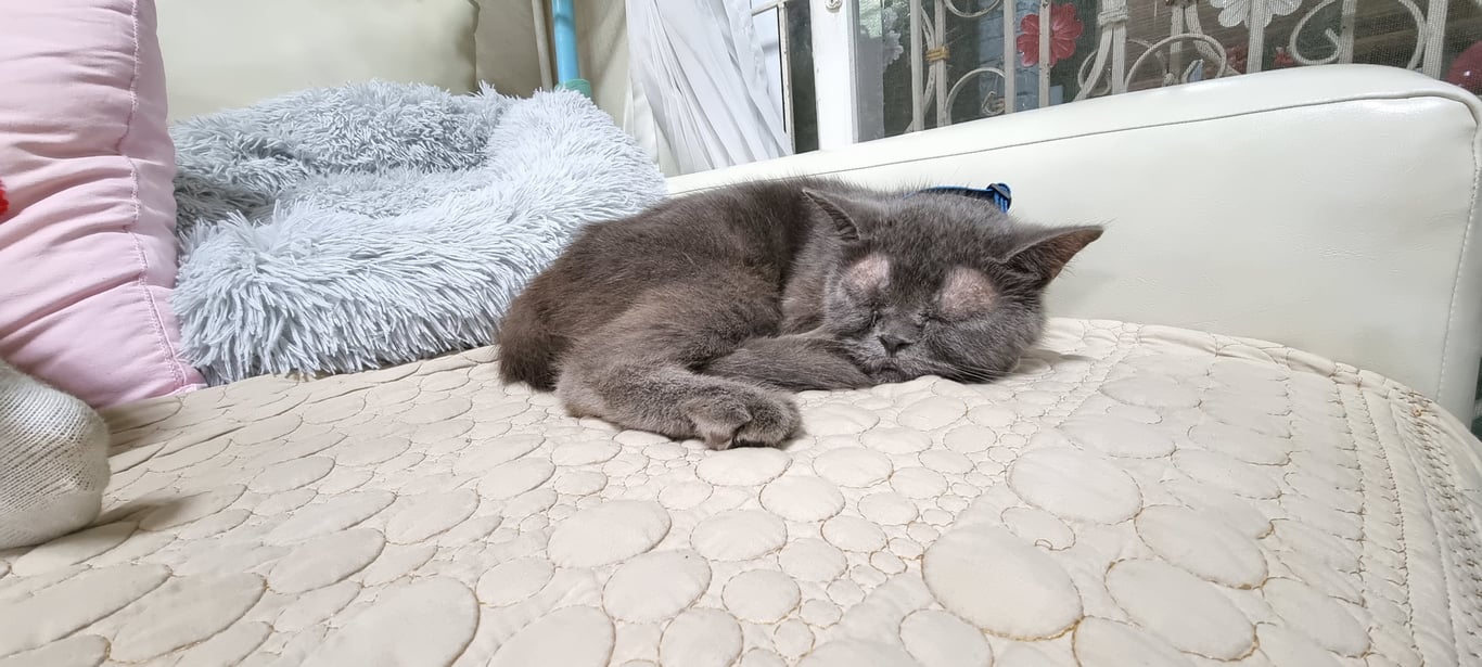 รอยตำหนิ: มีรอยผิวหนังอักเสบขนหลุดที่คิ้วสองข้าง และคอด้านขวาน้องเป็นแมวเชื่อง มีนิสัยที่ค่อนข้างเงียบ ไม่ค่อยส่งเสียงร้อง แต่มีความอยากรู้อยากเห็นชอบนั่งชิลล์ๆ เช่น ริมหน้าต่างหรือจุดที่มองเห็นวิวได้ ไม่ชอบเล่นอะไรที่เสียงดัง