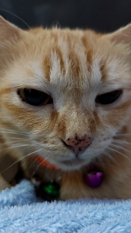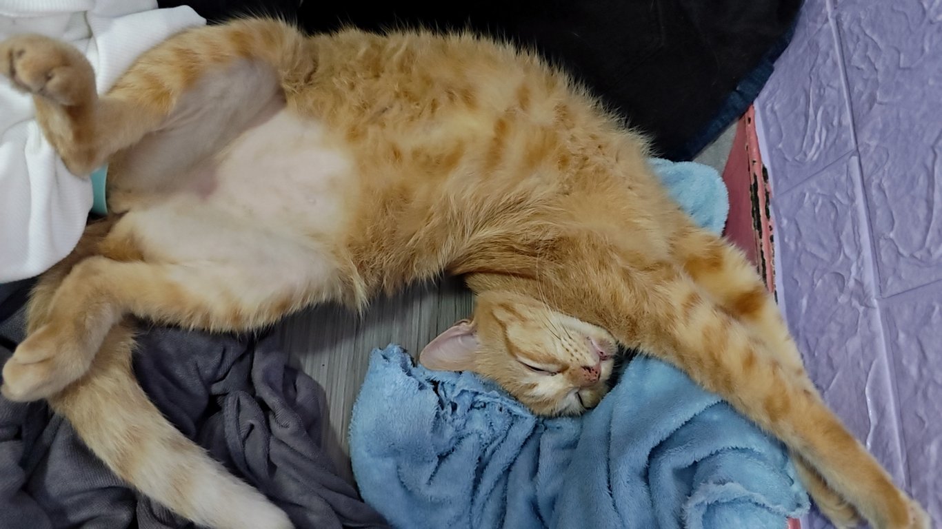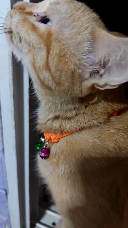 รอยตำหนิ: หัวเล็ก ท้องไม่มีขน ใส่ปลอกคอสีส้มขี้กลัว ขี้ตกใจ