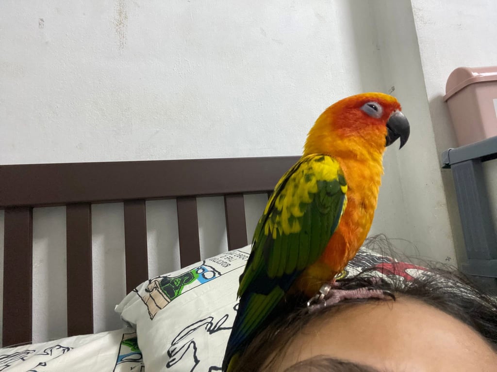 รอยตำหนิ: เล็บซ้ายเท้าหลังหัก1เล็บ ห่วงขาสีส้มน้องชอบร้องช่วง 6โมงเย็นเพราะเป็นเวลาที่หนูเลิกงาน(ช่วงที่ไปทำงานน้องจะอยู่กับแม่หนู) ชอบเอาอาหารมาทานบนหัวเจ้าของ ชอบอาหารหน่อยใส่พัดลม ชอบกินแตงโมโดยเฉพาะเม็ด ชอบกัดหู มุดเสื้อหรือผ้าห่มเวลาง่วง ไม่ชอบเวลาเห็นรูปหรือคลิปนกตัวอีกจะพองขนและจิก