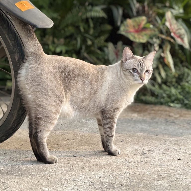 รอยตำหนิ: สีน้ำตาลอ่อน มีลายสลิดที่ขา หน้าและหลัง(จางๆ) ตาสีฟ้าอ่อนหางตรงขี้กลัว ขี้ตกใจ ค่อนข้างกลัวคนแปลกหน้า แต่ติดคน ขี้อ้อน