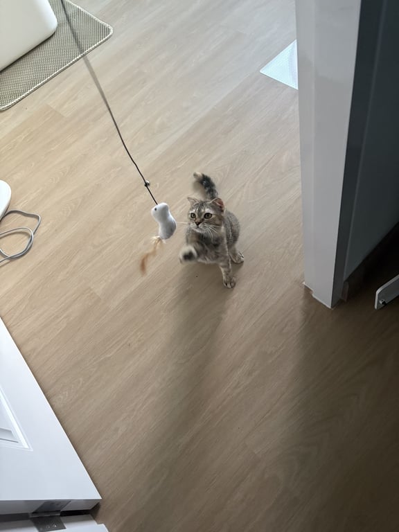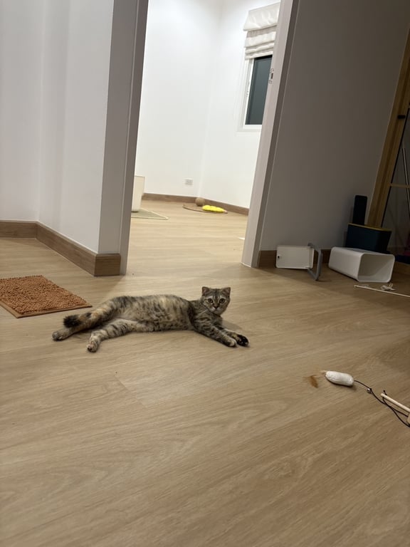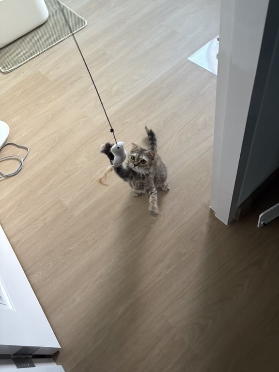 รอยตำหนิ: ทางลายสลิด ปลายหางสีดำแมวสก็อตติช ลายสลิดดำส้ม เพศเมีย ขี้กลัว