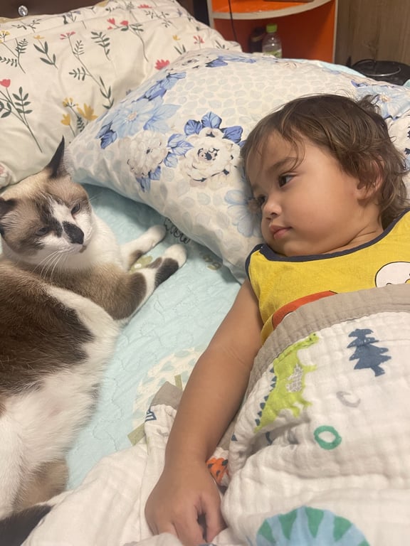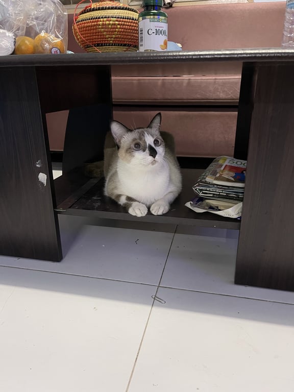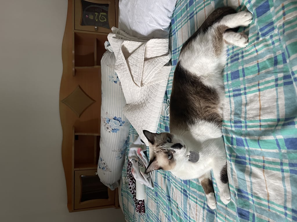 น้องค่อนข้างเขื่อง คุ้นคนง่ายไม่ดุ กินเก่งมาก ค่อนข้างอ้วน หนัก 6 Kg