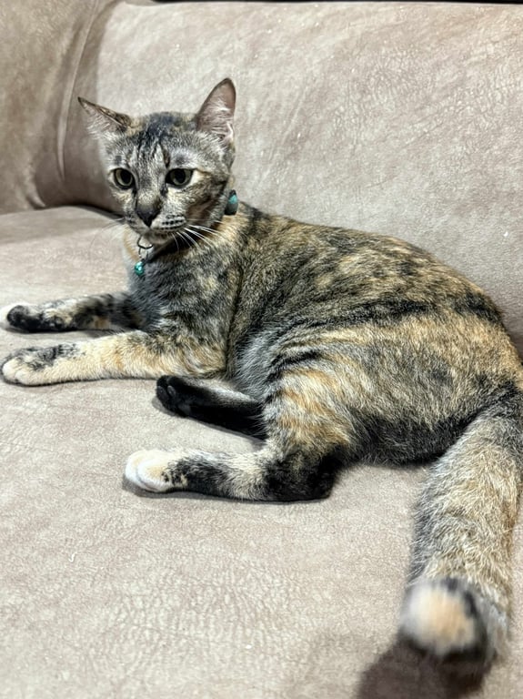 รอยตำหนิ: ลายสลิดผสมสามสีมีส้มปะตามตัว หางยาว ปลายหางสีเทาอ่อน ปลอกคอสีเขียวลายสลิดผสมสามสีมีส้มปะตามตัว หางยาว ปลายหางสีเทาอ่อน ปลอกคอสีเขียว