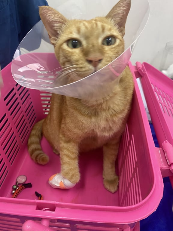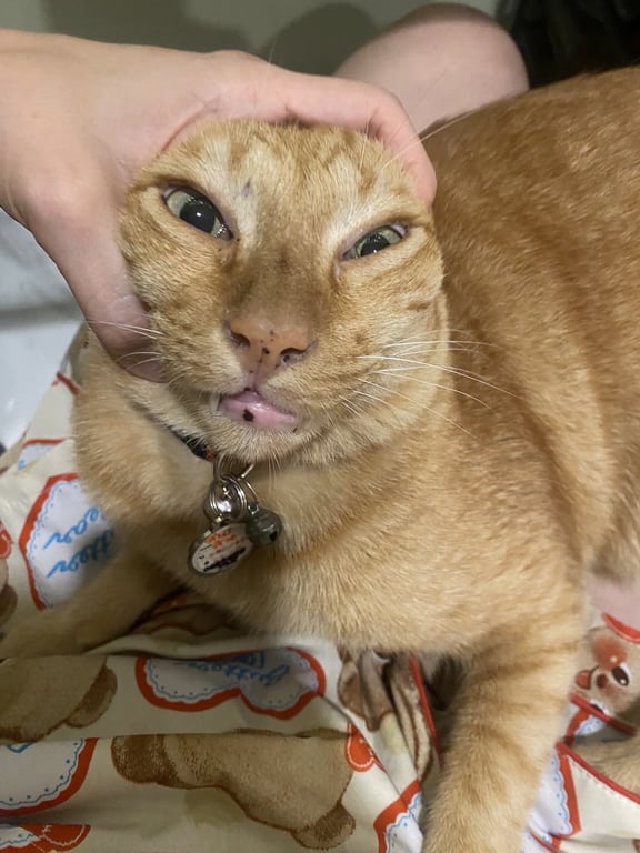 รอยตำหนิ: ตาซ้ายมีเยื่อติดดวงตาตลอด มีจุดดำที่ริมฝีปากล่างพึ่งผ่าเย็บแผลที่ขา ไม่ดุ ขี้อ้อนขี้บ่น ขี้กลัวฝน