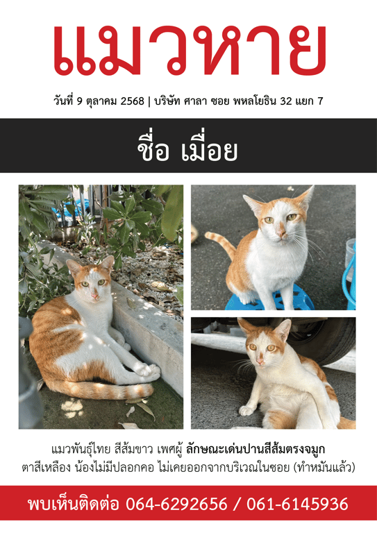 รอยตำหนิ: จมูกมีปานสีส้ม ตาสีเหลือง