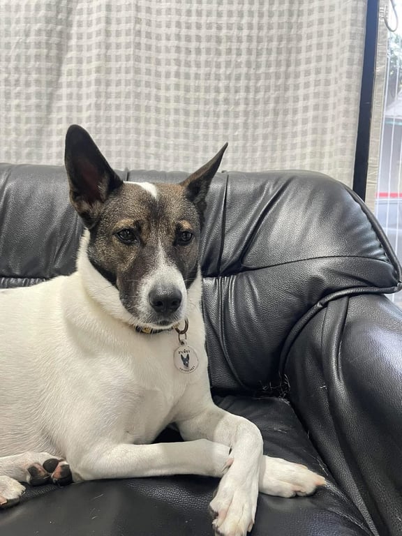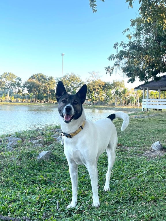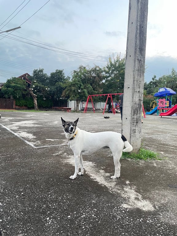 รอยตำหนิ: ตัวขาวหัวดำ ที่โคนหางมีสีดำ ปลอกคอสีเหลืองมีป้ายชื่อเบอร์โทรขี้กลัว ไม่ให้คนอื่นจับ ค่อนค้างอินเทอร์เวลิด