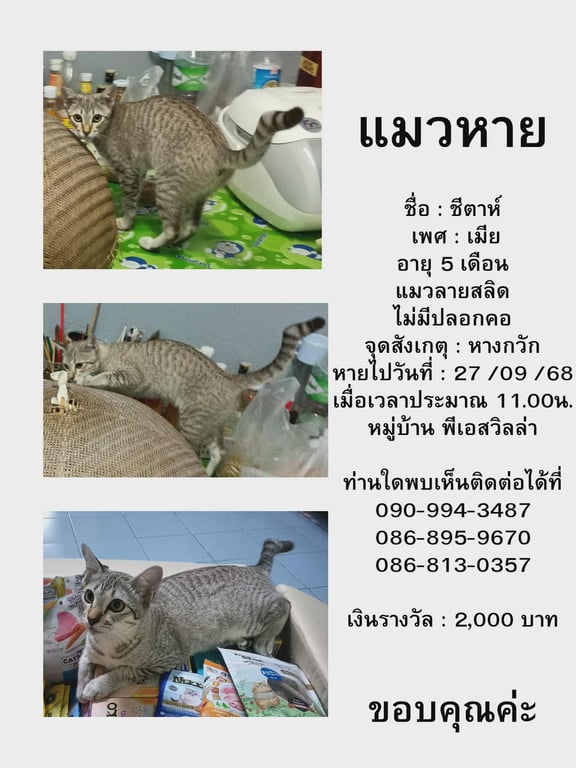 รอยตำหนิ: หางกวักขี้ตกใจเสียงรถ ไม่ชินคน ไม่ค่อยชอบให้อุ้มนานๆ
