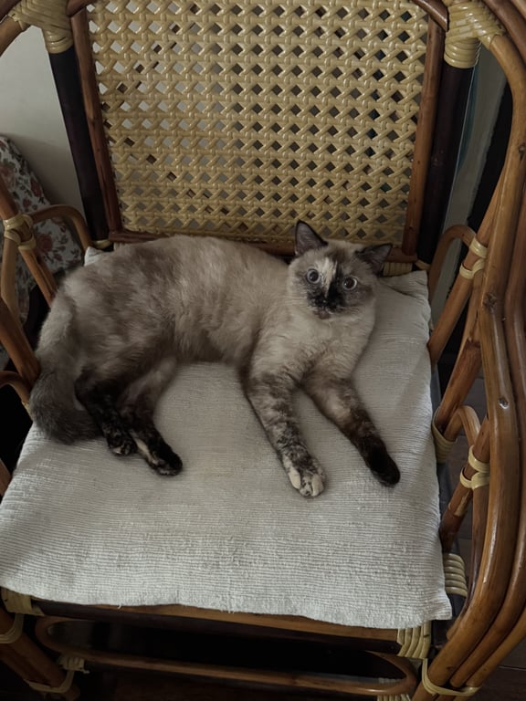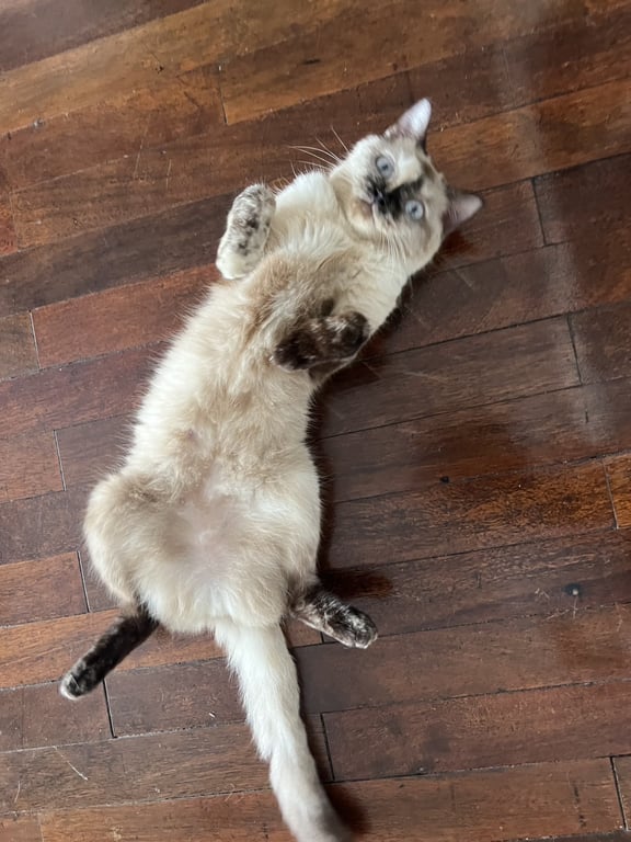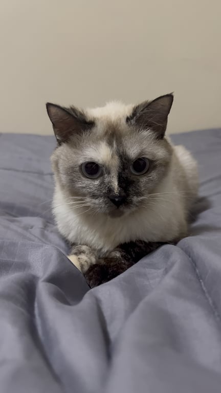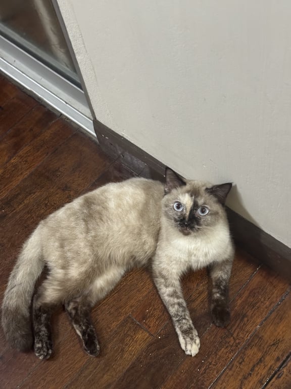 รอยตำหนิ: ขาหน้าข้างขวาไม่มีถุงเท้า1. ตาสีฟ้าอ่อน 2. น้ำหนักประมาณ 2.8-3 kg. 3. เข้ากับคนง่าย พูดเก่ง 4. ขี้ตกใจ + กลัวเสียงดัง