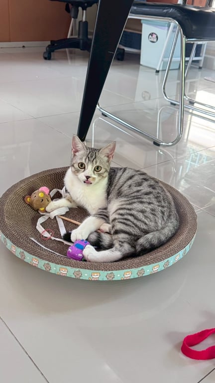 รอยตำหนิ: มีรอยขนสีส้มๆตรงจมูกซ้ายน้องจำชื่อตัวเองได้ ค่อนข้างขี้กลัว แต่ก็ชอบออกไปเล่นนู้นนี้ ดื้อๆซนๆ