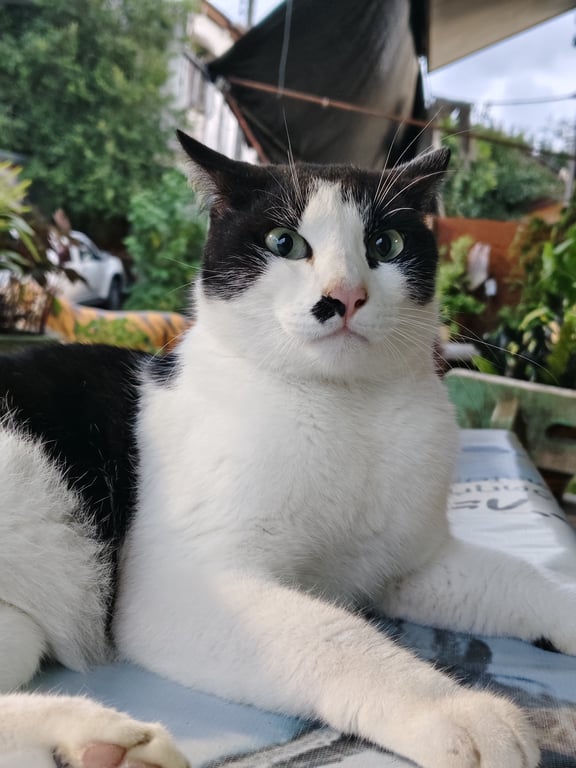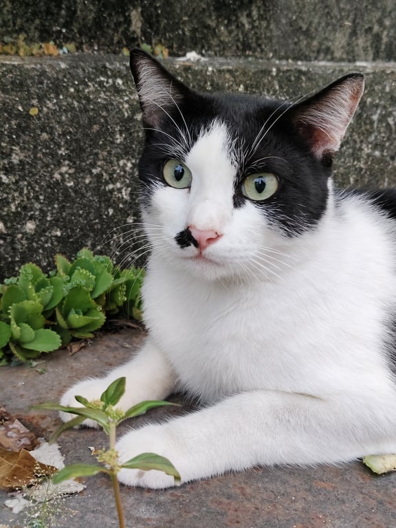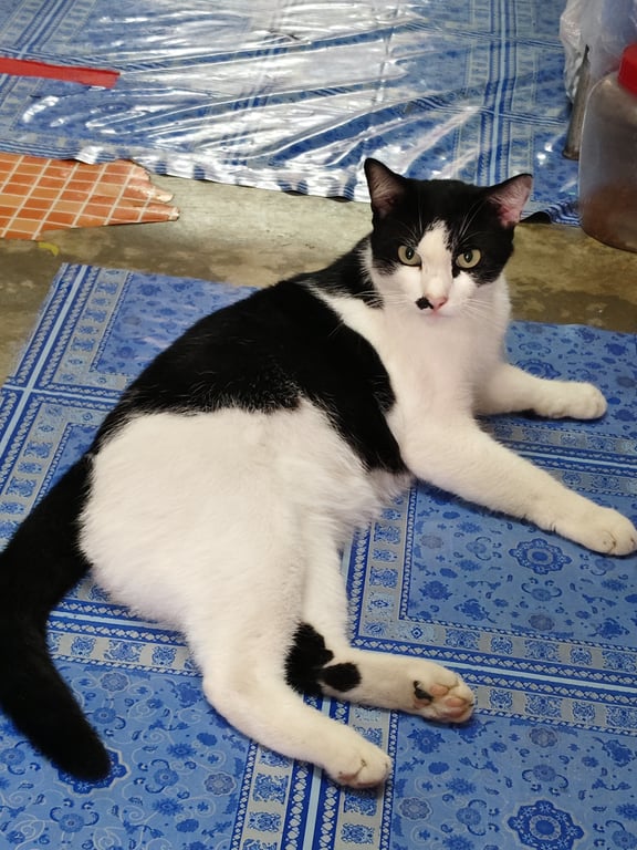 รอยตำหนิ: มีจุดสีดำบริเวณจมูกด้านขวา ลักษณะคล้ายไฝ มีผมหน้าม้า ตาสีเหลือง หูสีดำ ขา 4 ข้างเป็นสีขาว หลังและหางสีดำรักความสงบ ชอบนอน ไม่ชอบยุ่งกับคนแปลกหน้า