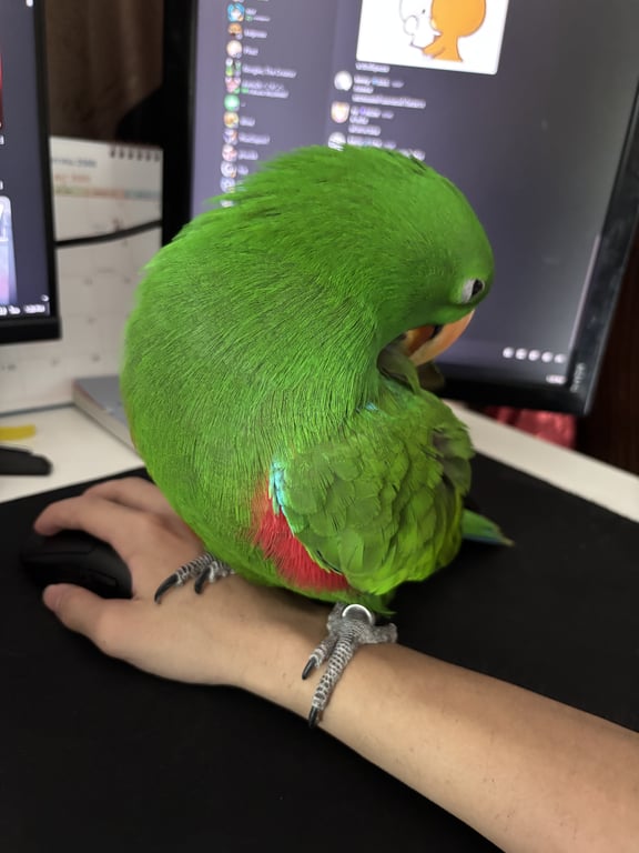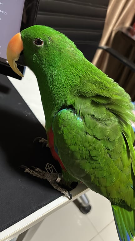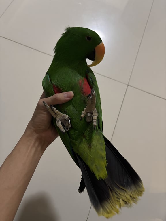 รอยตำหนิ: มีห่วงขาข้างเดียวสามารถพูดได้เล็กน้อย แม่จ๋า จุ๊บๆๆๆ เคน แต่มักจะร้องเสียงดังเสียงคล้ายนกหวีดที่ดังมากๆ น้องไม่ชอบให้จับตรงหัวครับไม่งั้นจะหนี