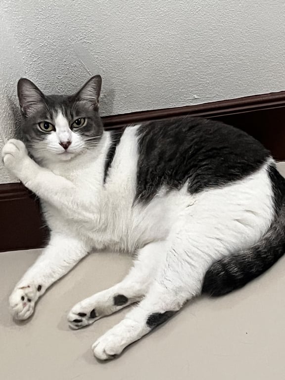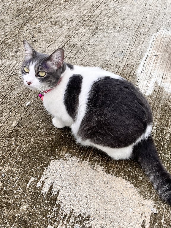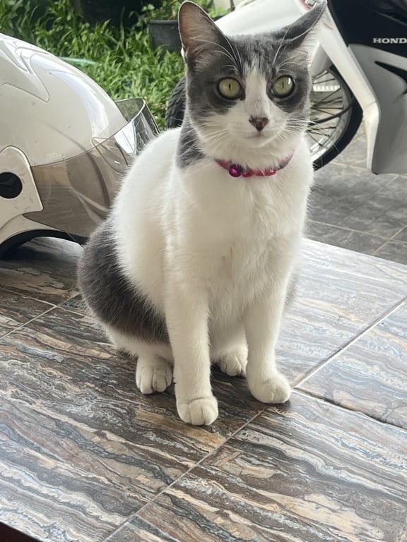 รอยตำหนิ: หางมีขนสีเทาเข้มและสีขาวสลับเป็นชั้นๆ ตาโต ที่เนื้อจมูกมีปานติด สีด่างๆอายุ 4 ปี นิสัยขี้ตกใจ ไม่ให้คนแปลกหน้าจับง่ายๆ น้องไม่กินข้าว กินแต่อาหารเม็ด ฉี่/อึ ในกะบะทรายอย่างเดียว