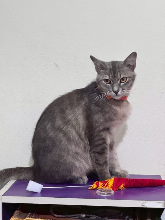 รอยตำหนิ: ใส่ปลอกคอสีส้มไม่มีกระดิ่ง ตัวค่อนข้างใหญ่คุ้นคนไม่ดุ หน้าน้องจะเหมือนยิ้มอยู่