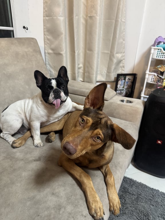 รอยตำหนิ: ลิ้นแหว่งฮีโร่มีลิ้นแหว่งตัวสีขาวหน้าดสีดำชอบวิ่งเข้าหาคน บิลลี่กลัวคนตาสีเหลืองขายาวตัวสีน้ำตาล น้องไม่ได้ใส่ปลอกคอทั้งคู่