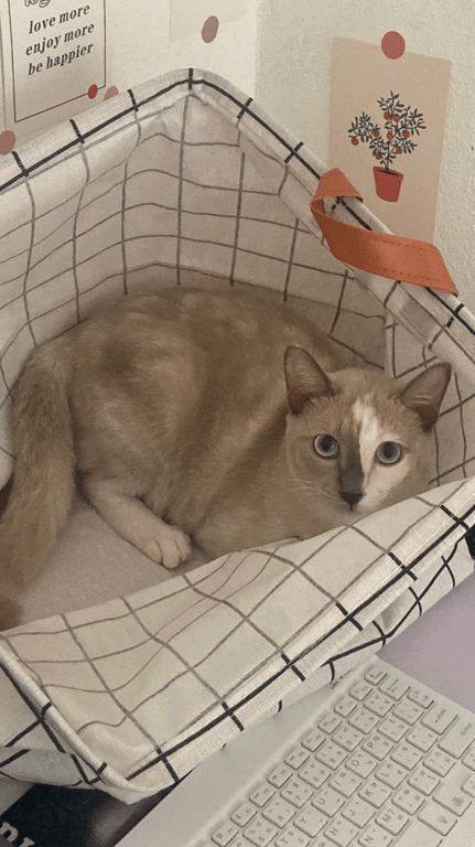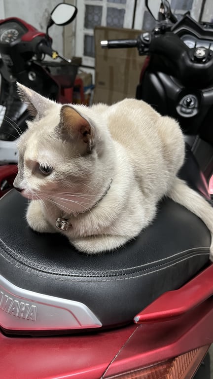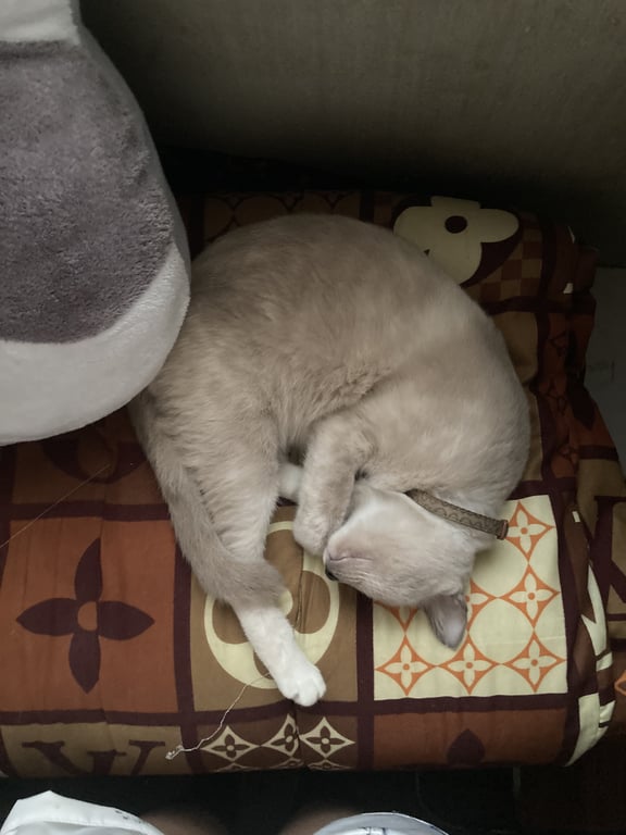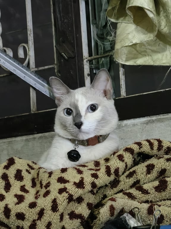 รอยตำหนิ: หน้าสองสี เทา+ขาวหน้าสองสี หูตั้ง หางยาว ตาสีฟ้า ปลอกคอสายสีเทา กระดิ่งเป็นรูป UFO สีชมพูอ่อน นิสัยกลัวคน กลัวเสียงดัง