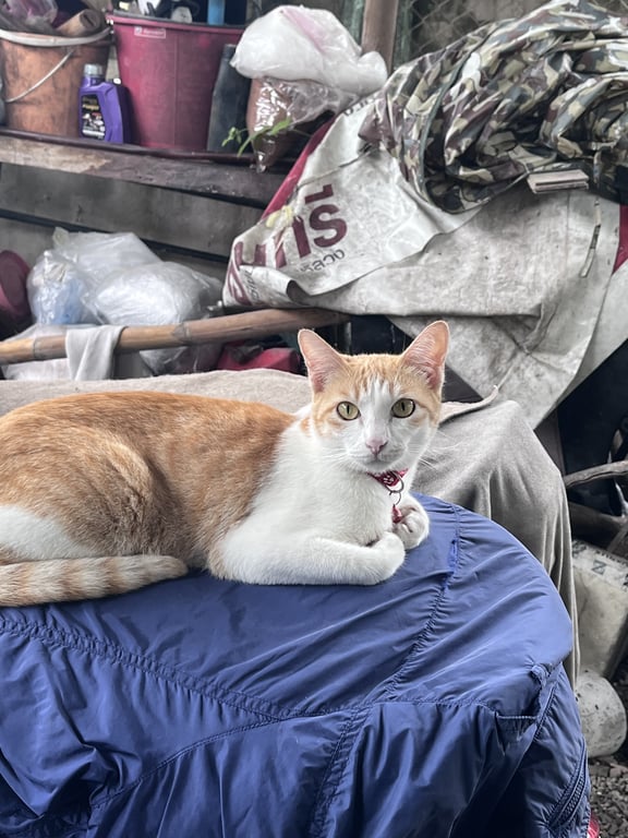 รอยตำหนิ: มีปลอกคอสีแดง (ไม่มีกระดิ่ง)