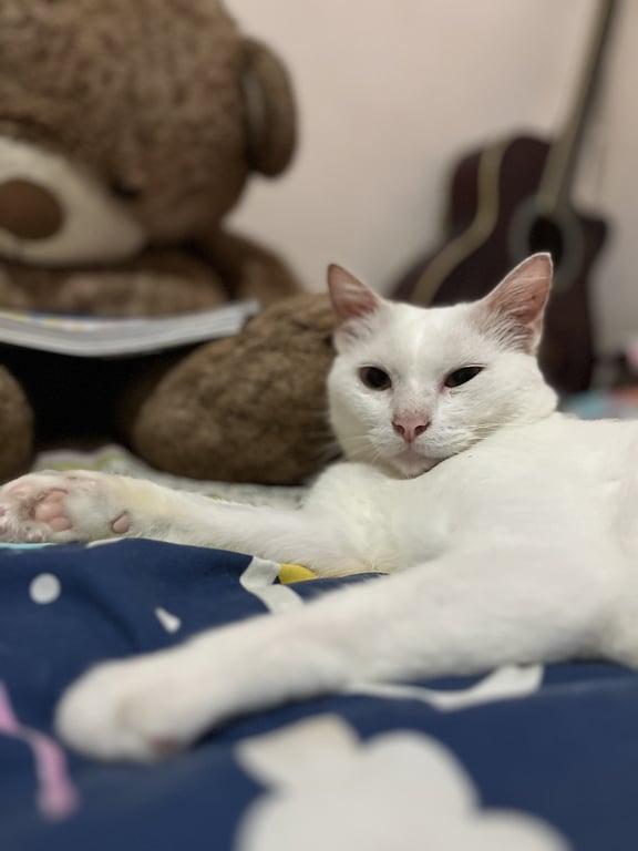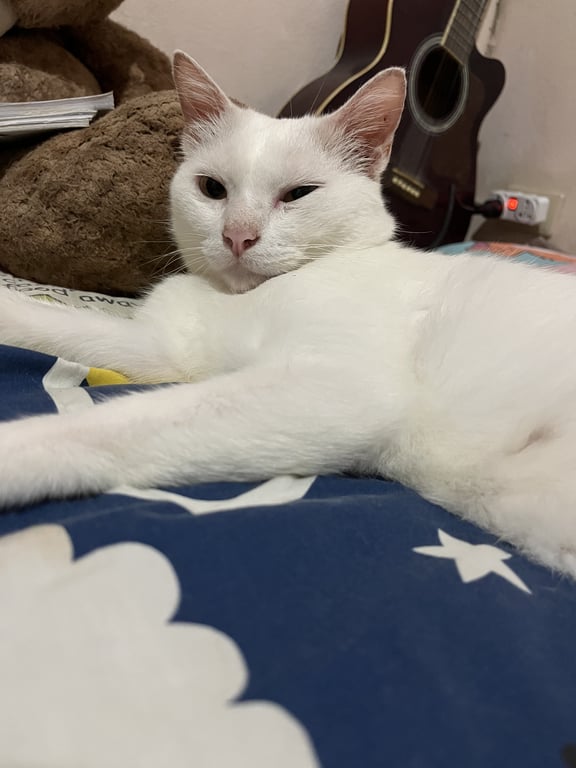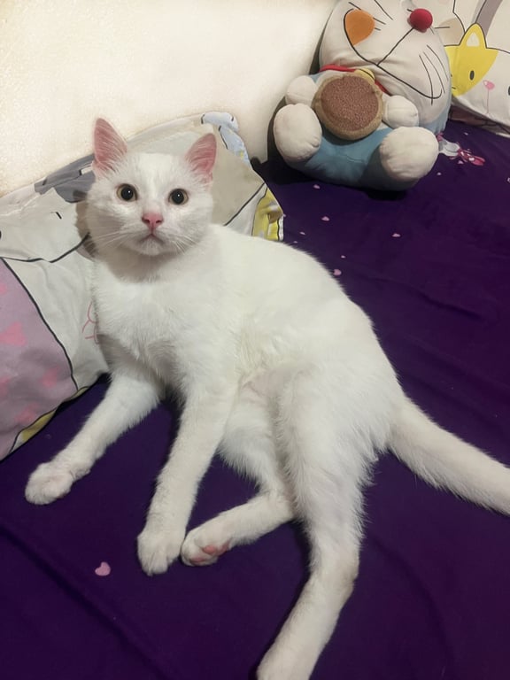 ตัวสีขาวตาสีเหลืองดอกบวบ