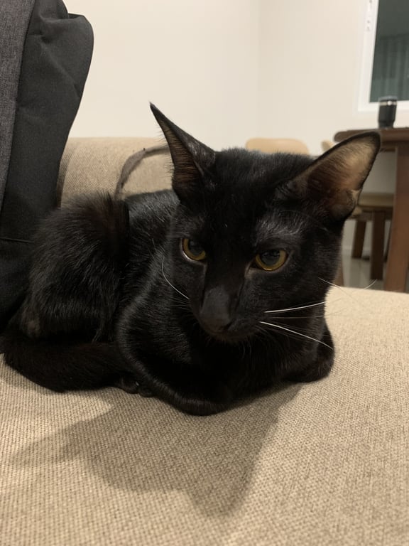 รอยตำหนิ: ปลายหางของแมวจะหักงอตรงปลายหาง ตรงหนวด จะมีหนวดเส้นสีขาว 3-4 เส้นขนตรงใบหูจะไม่ค่อยมี ปลายหางจะหักงอ หนวดจะมีหนวดสีขาว 3-4 เส้น โดยประมาณ **สำคัญ = ก่อนหาย จะใส่เสื้อลายสีแดง (ตามภาพประกอบ) ปลอกคอสีฟ้า