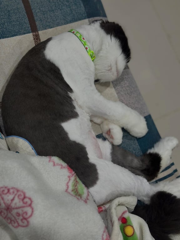 รอยตำหนิ: ตรงหัวสีขนฝั่งนึงดำฝั่งนึงขาวอายุ 7ปี ช่วงที่หายน้องตัดขน ขนจะเกรียนๆหน่อย