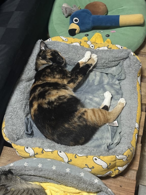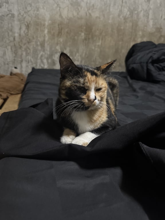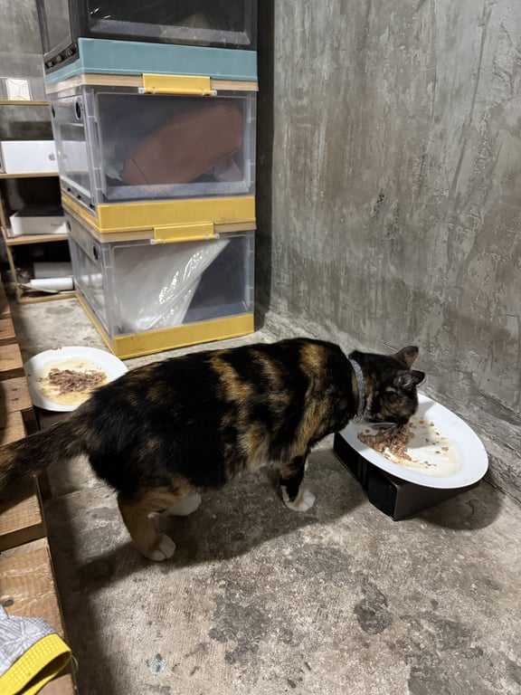 รอยตำหนิ: แมวสีเปรอะ จมูกขาว อุ้งเท้าสีขาวทั้งสี่เท้า ขาขวาหลังสีส้ม ปลอกคอสีฟ้าลายเสือดาว ไม่มีกระดิ่งค่อนข้างตกใจเสียงดัง