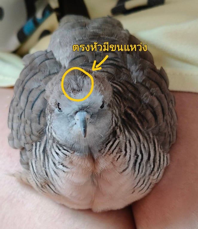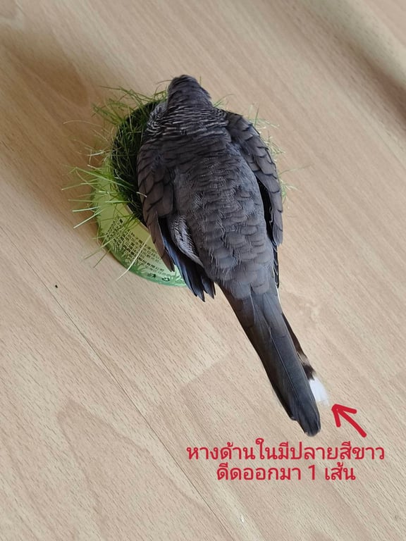 รอยตำหนิ: ตรงกลางหัวมีขนแหว่ง, หางด้านในมีปลายสีขาวดีดออกมา 1 เส้น