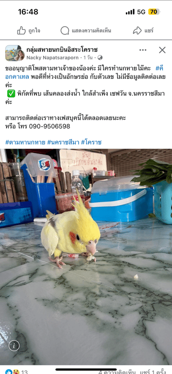 รอยตำหนิ: เหลืองแต้มเทาดำ นกเพศเมียมีอายุหลายปีเพศเมียอายุเยอะ จมูกเคยเป็นแผล เชื่อแต่ไม่ให้จับ