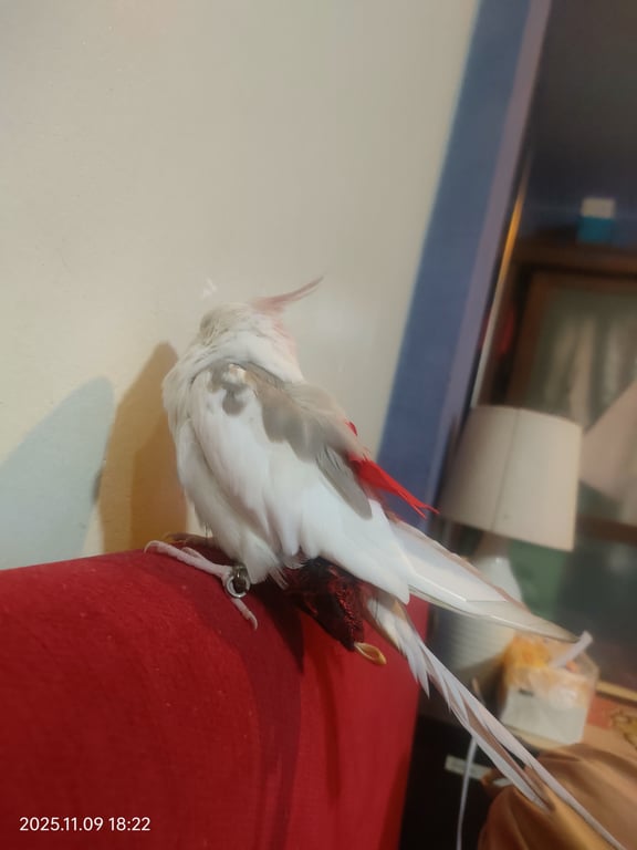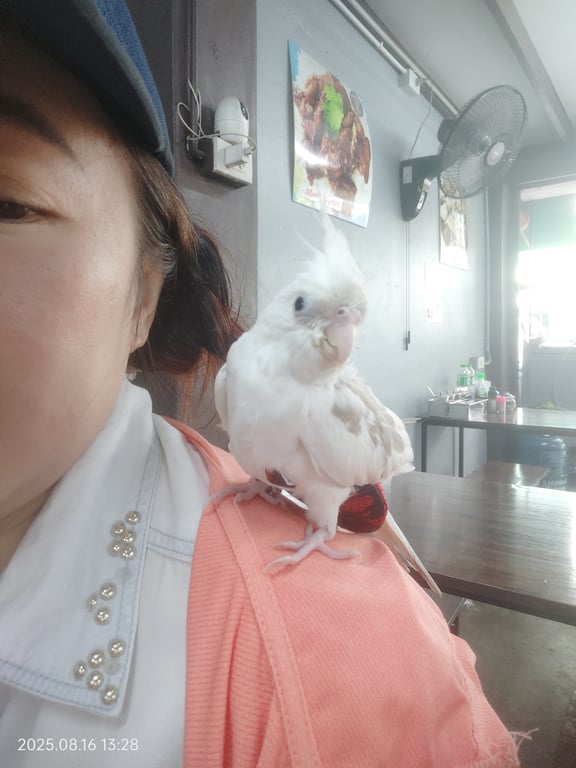 รอยตำหนิ: สีขาว ปีกสีเทาเชื่องคน ขี้ตกใจ ร้อวเพลงได้นิดหน่อย