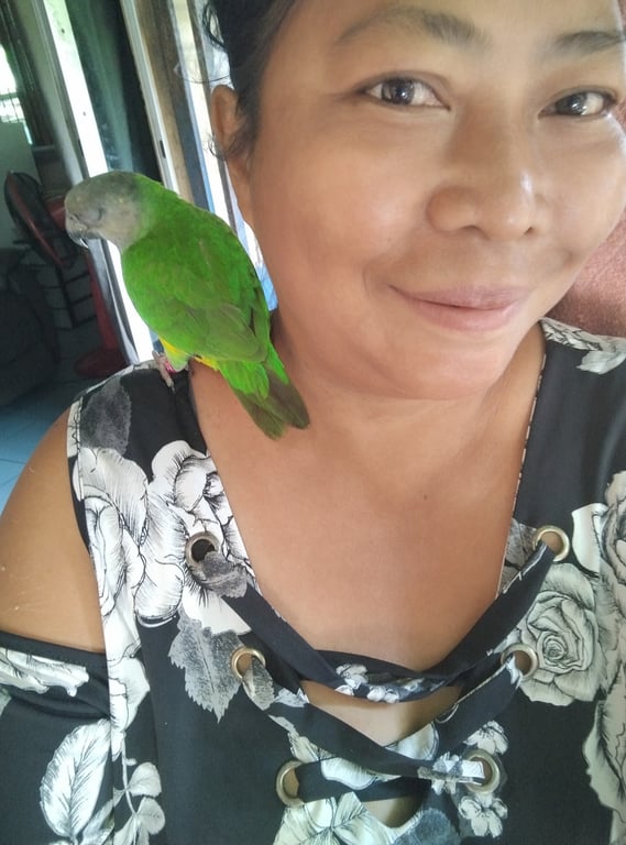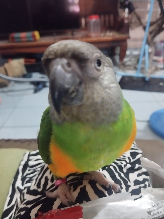 รอยตำหนิ: ไม่มีขี้สงสัย ชอบปีนป่าย ปากคม เวลาเกาะจะชอบใช้ปากเกี่ยวถ้าสงสัยอะไรอยากได้จะเอาให้ได้ บินต่ำชอบบินเกาะ ใช้เท้าหยิบจับอาหารกิน มีปลอกขาสีบานเย็น ชมภูเข้มอยู่ที่ข้อเท้าด้านขวา