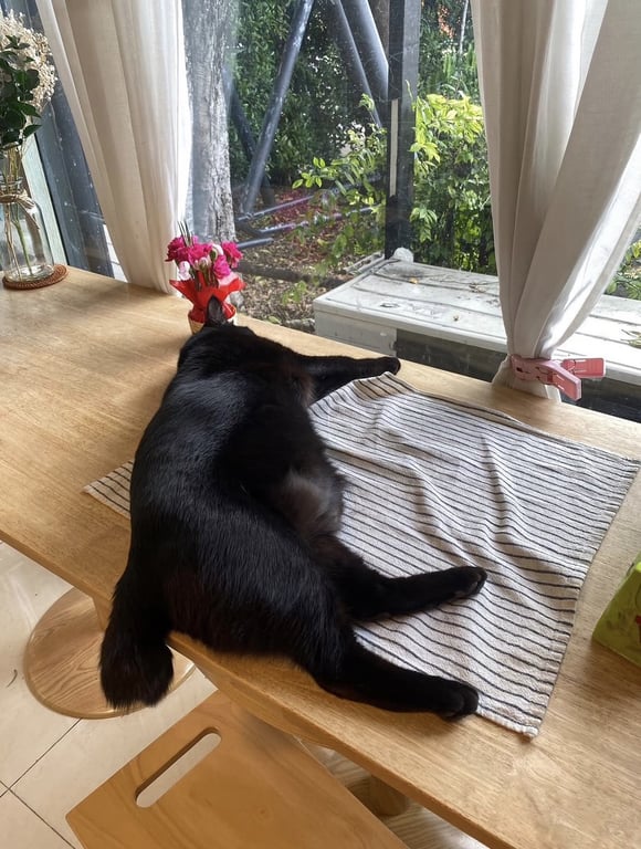 รอยตำหนิ: หางกวัก อ้วนเหมือนแมวท้องเชื่อง เรียกชื่อแล้วหัน ถ้านั่งลงจะเดินเข้ามาหา