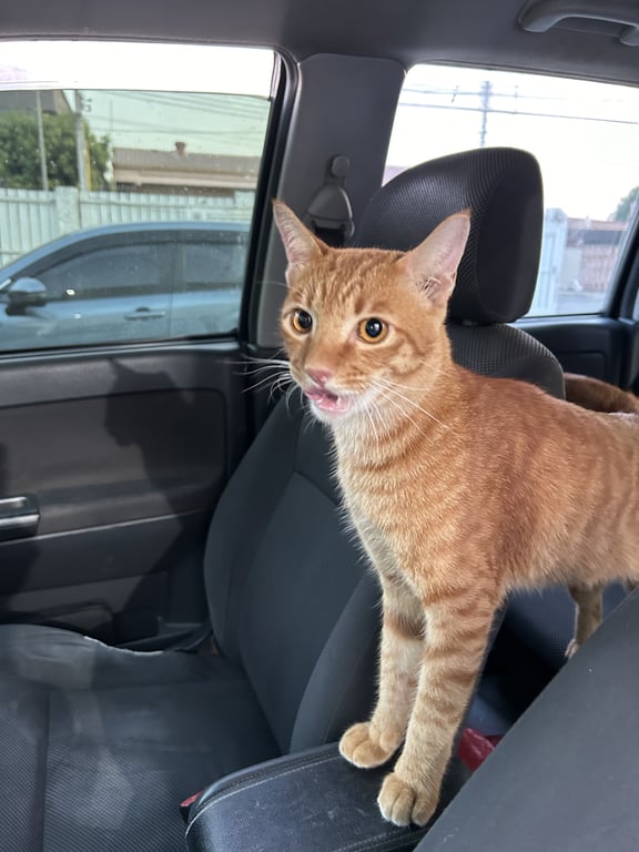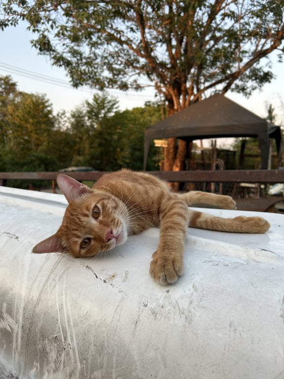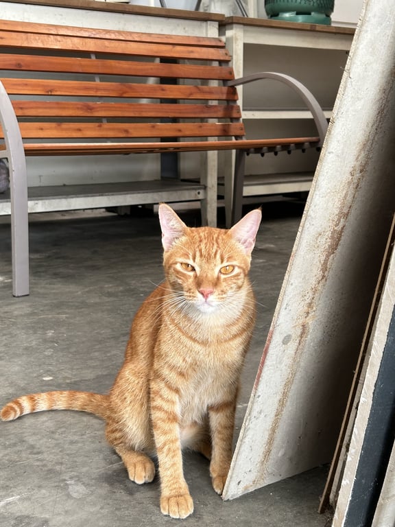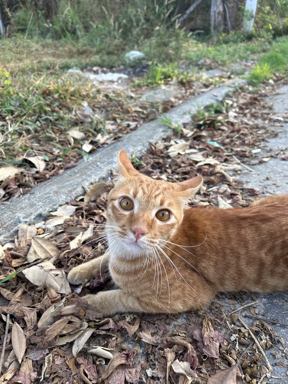 รอยตำหนิ: เป็นสีส้มเกือบทั้งตัว ตรงคาง แผงอก ท้องมีสีขาวแซมนิดเดียวค่ะ หางยาวตรงเป็นมิตร ชอบขู่ฟ่อๆ