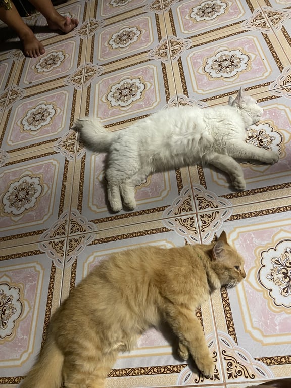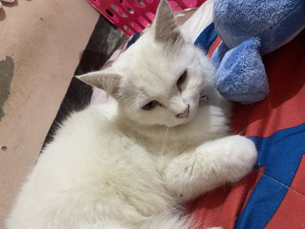 รอยตำหนิ: มีคราบน้ำมันสีดำบนส่วนขนหลัง2จุดนิสัยขี้อ้อนชอบอยู่กับคนชอบนวดพุงคน