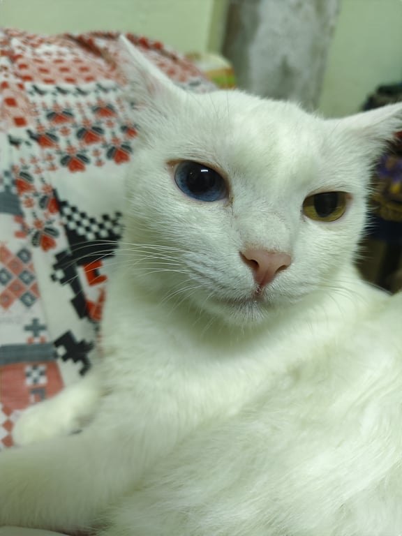 รอยตำหนิ: ตาสองสี ตาขวาสีฟ้า ตาซ้ายสีเหลือง