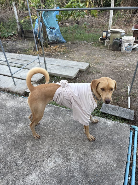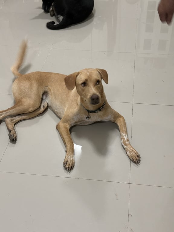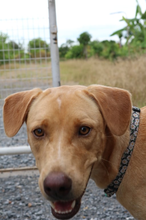 รอยตำหนิ: ไม่ใส่ปลอกคอ หัวแหลม ขอบตาเข้ม ตัวผอมนิสัยใจดี ไม่ดุ ชอบตากแดดเล่นโคลน เวลาเจอหมาด้วยกันจะดีดๆ