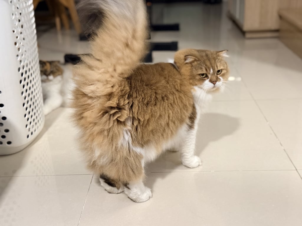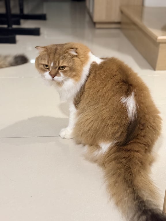 รอยตำหนิ: ขนสีขาวกลางหลังกลัวคนแปลกหน้า ชอบแอบ ไม่ร้องไม่กัดไม่ขวน