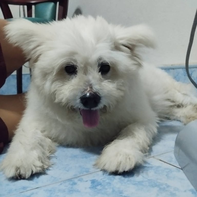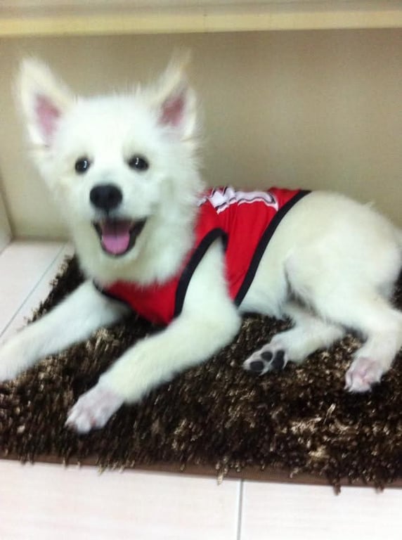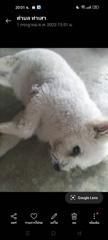 รอยตำหนิ: สีขาวทั้งตัวหมาอายุมาก ตาไม่ค่อยดี