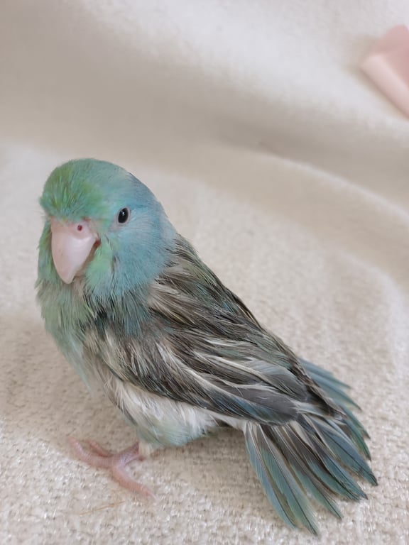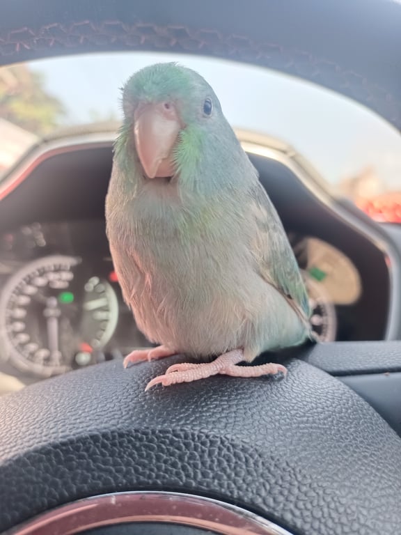 รอยตำหนิ: มีสีขาวบริเวณคอ และช่วงท้อง และปีกเชื่อง ติดคน ไม่กัด กินอาหารลูกป้อนA21