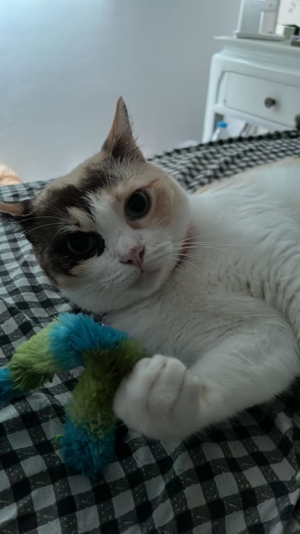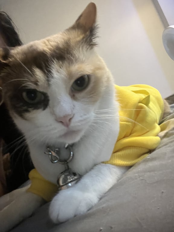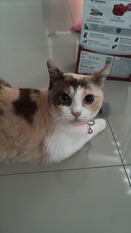 รอยตำหนิ: มีกระที่จมูก แต่ต้องดูดีๆเพราะขนบังมองไม่ชัด มีปลอกคอชมพู มีกระดิ่งนิสัยค่อนข้างกลัวคนแปลกหน้า