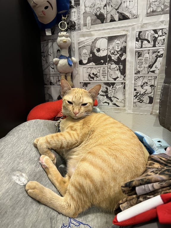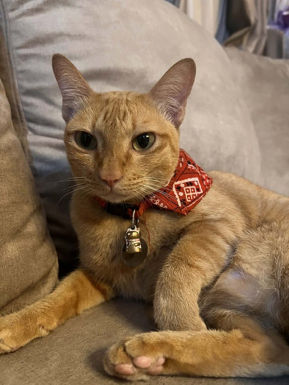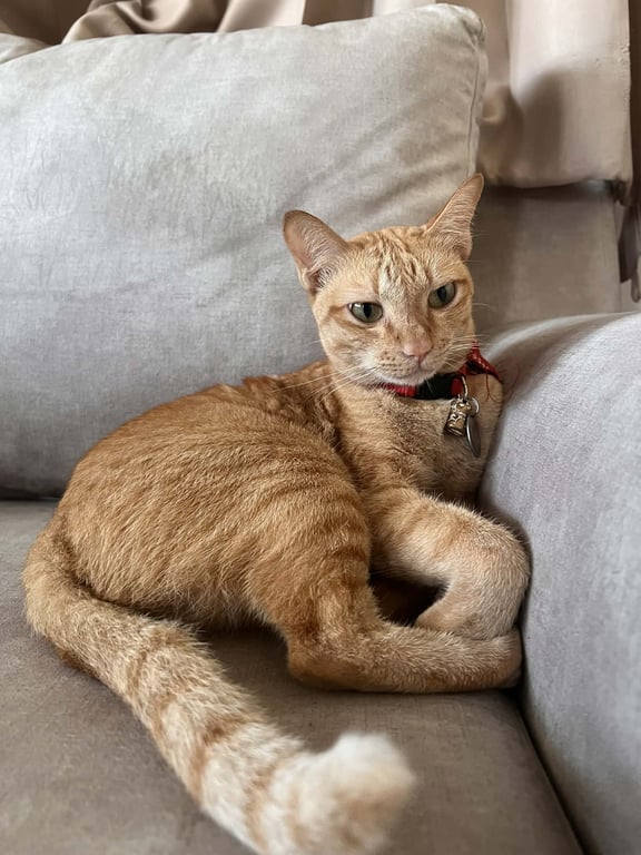 รอยตำหนิ: ลายสลิดสีส้มตัวเล็ก ไม่ใหญ่มาก ลายสลิดทั้งตัว กลัวคนแปลกหน้า แต่ถ้าเข้าหาดีๆจะเล่นกับเขาได้