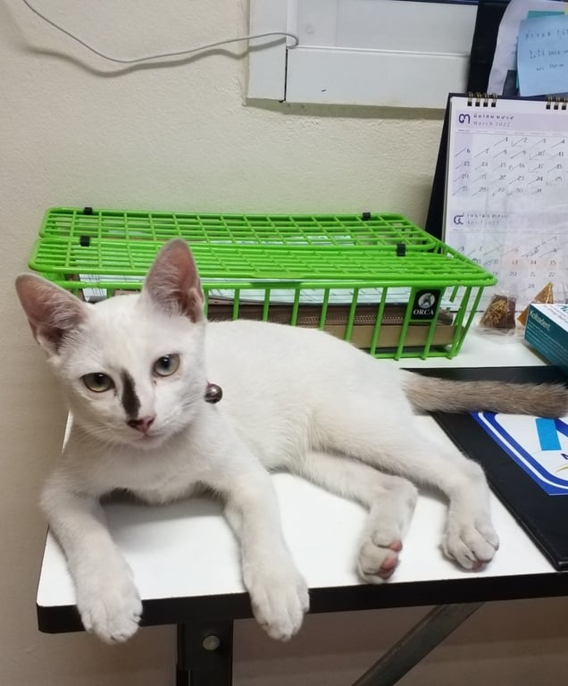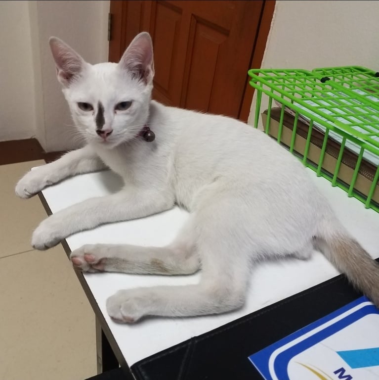 รอยตำหนิ: มีปื้นสีน้ำตาลที่จมูก หางสีน้ำตาล
