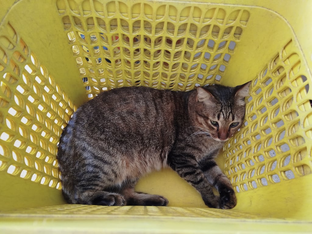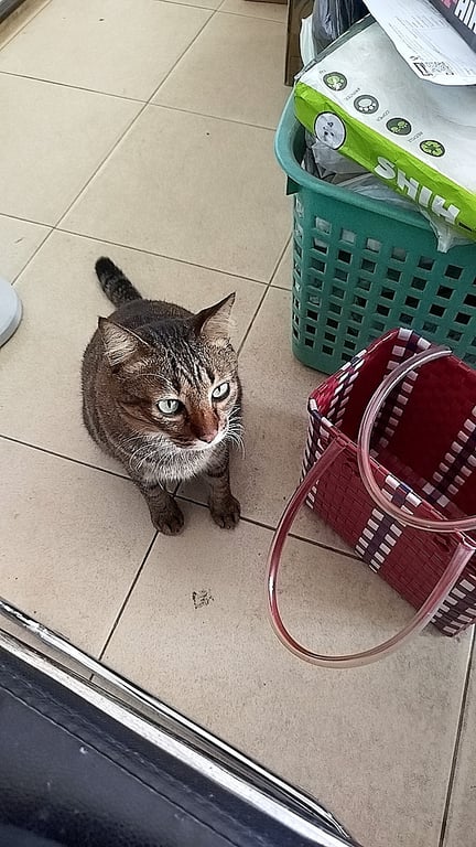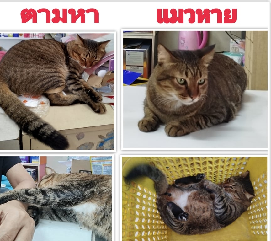 รอยตำหนิ: คางขาวแมวลายสลิด หน้าอกขาว ท้องตรงขาหลังขาว หางเต็ม เท้าขวาหลังตรงนิ้วมีแต้มขาว