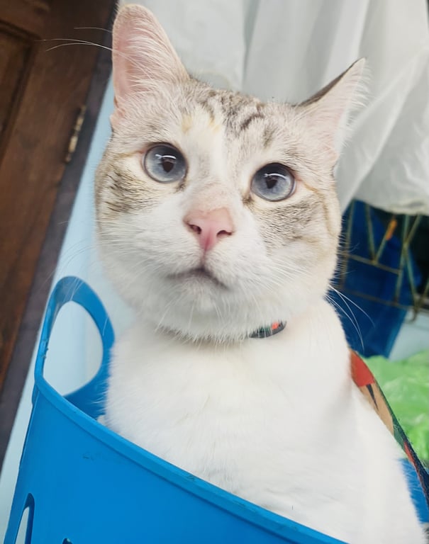 รอยตำหนิ: ตาสีฟ้าขี้กลัว อาจตกใจผู้คนแปลกหน้า และไม่คุ้นชินเท่าไร ชอบขู่แต่ไม่กัด ถ้าเรียกชื่อน้องจะวิ่งเข้ามาหาคอลเคลียเองเลย