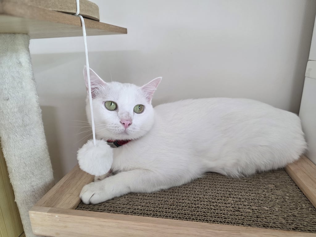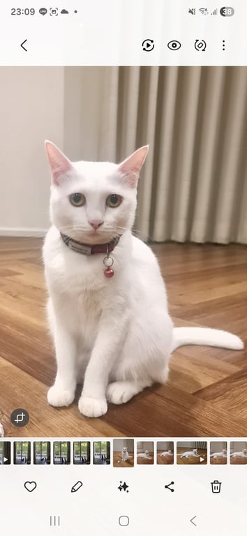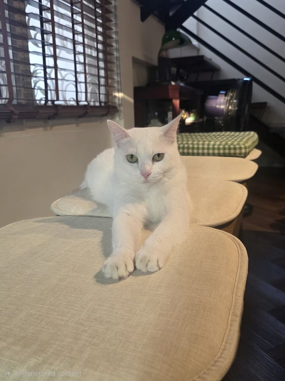 รอยตำหนิ: ขาวมั้งตัว ขนยาวกว่าแมวไทยไม่ค่อยกลัวอะไร น่าจะช่วยเหลือตัวเองไม่ได้มนโลกข้างนอก