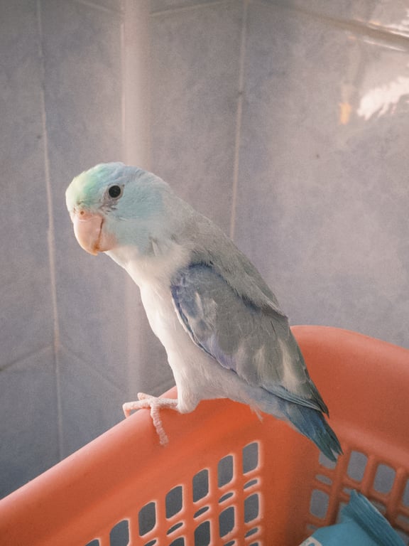 รอยตำหนิ: มีด่างๆสีขาวที่หัวไม่ค่อยให้จับตัว ชอบกินฮวยมั้ว ถ้าได้ยินเสียงขวดน้ำพลาสติดจะบินมาหา