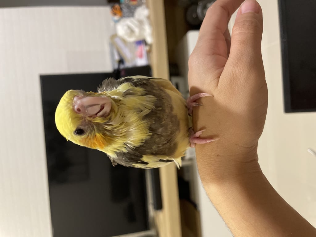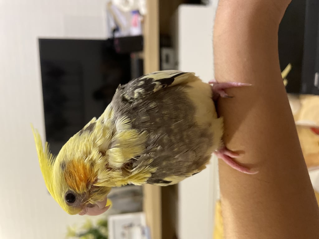 รอยตำหนิ: สีเหลืองแซมดำทั้งตัว มีตำหนิขีดสีดำที่ปากไม่มีห่วงขา นิสัยไม่ชอบให้คนจับ แต่จะชอบเกาะคน ต้องค่อยๆเกาหัวถึงจะสามารถจับตัวน้องได้