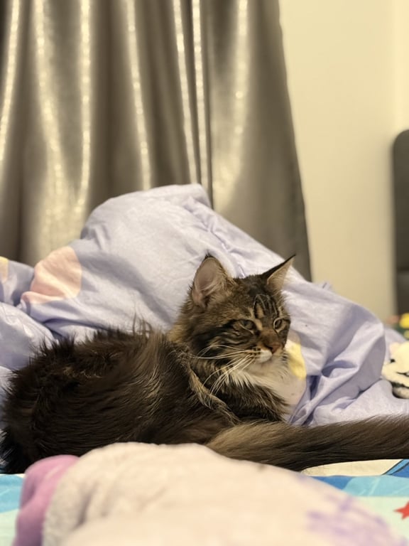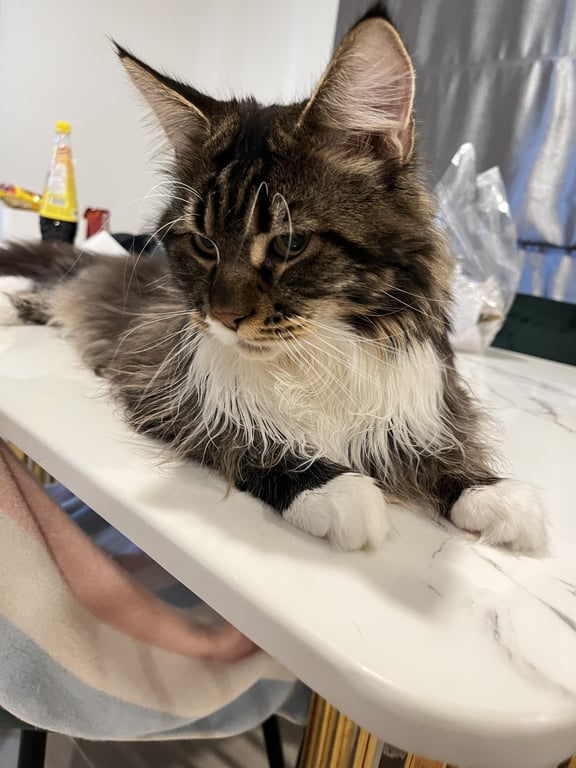 รอยตำหนิ: เท้า4ข้างเหมือนใส่ถุงเท้าสีขาว คอมีเหมือนใส่ผ้าพันคอสีขาวขี้กลัว ไม่ให้คนแปลกหน้าจับ