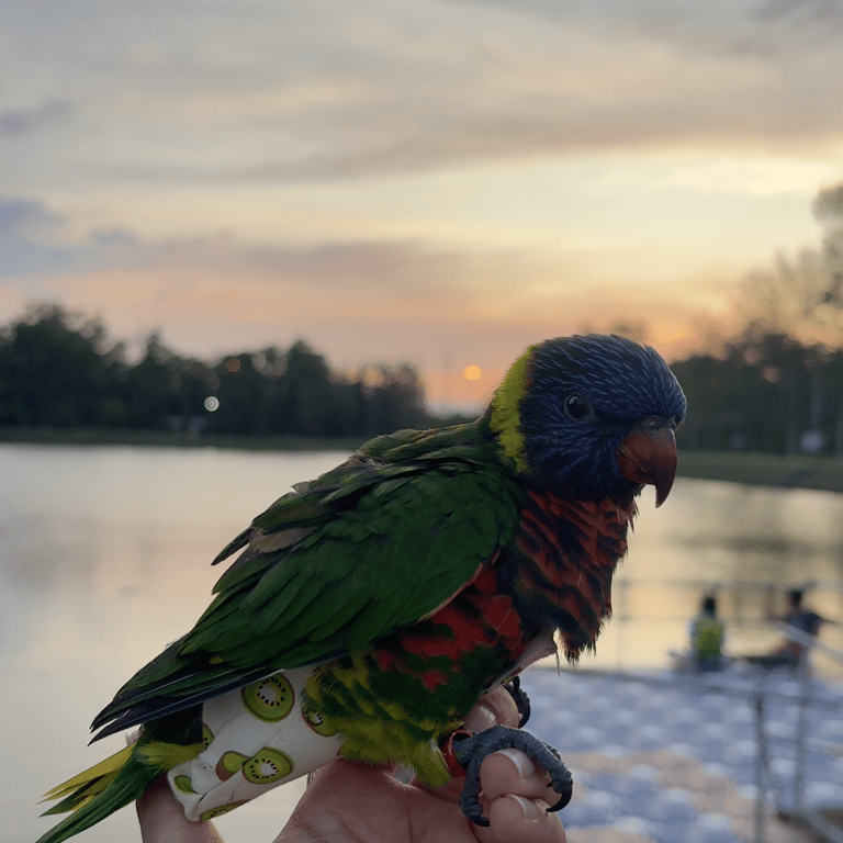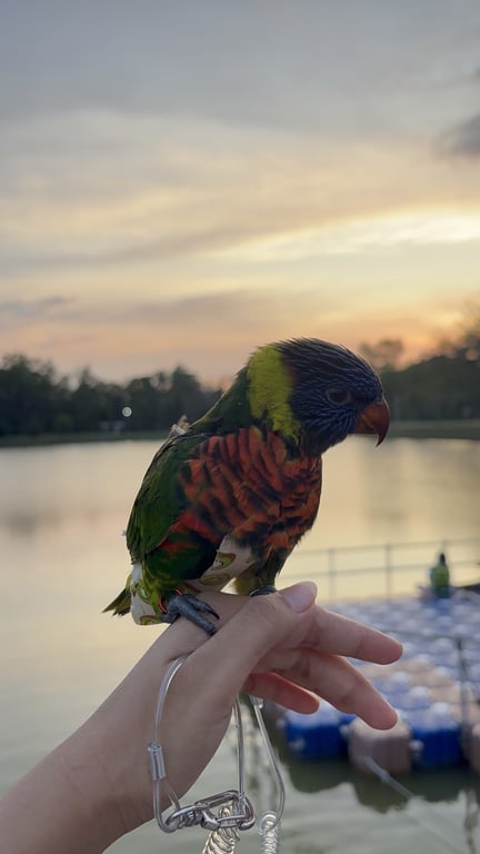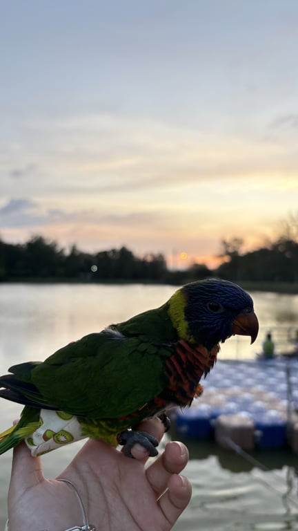 รอยตำหนิ: ใส่เพิมเพิสรูปกีวี่ ตาน้องแป๋วมาก ขนยังขึ้นไม่เต็ม มีห่วงสีแดงอีกข้างเป็นห่วงบิดเกลียวเชื่อง ติดคนขึ้นมือ