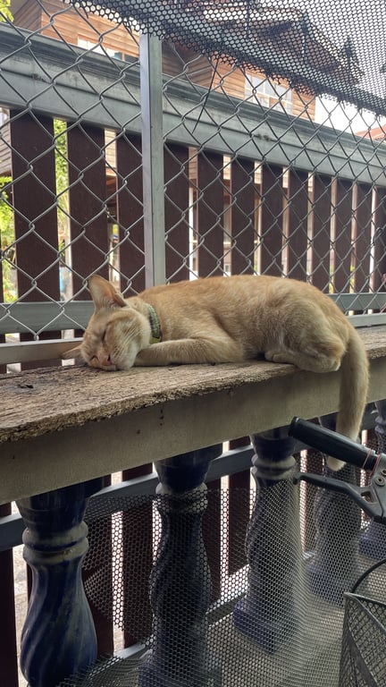 รอยตำหนิ: ขนตรงปากสีขาว หางยาวแมวส้ม นิสัยเรียบร้อย ชอบกินเปียกและแมวเลีย